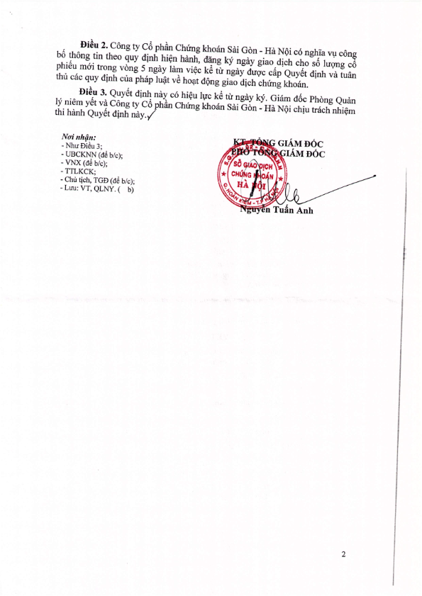 Thời điểm niêm yết cụ thể SHS sẽ thông báo sau khi được Sở GDCK Hà Nội chấp thuận.