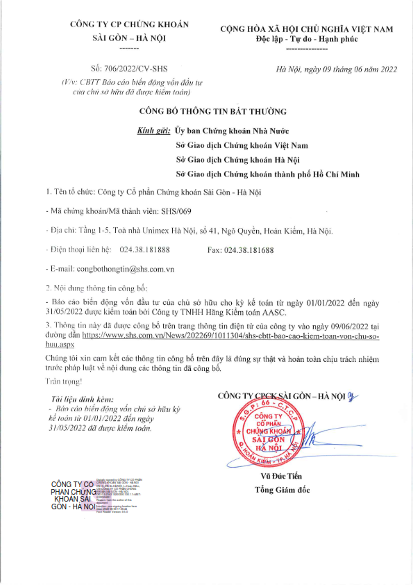 SHS: CBTT Báo cáo kiểm toán vốn chủ sở hữu