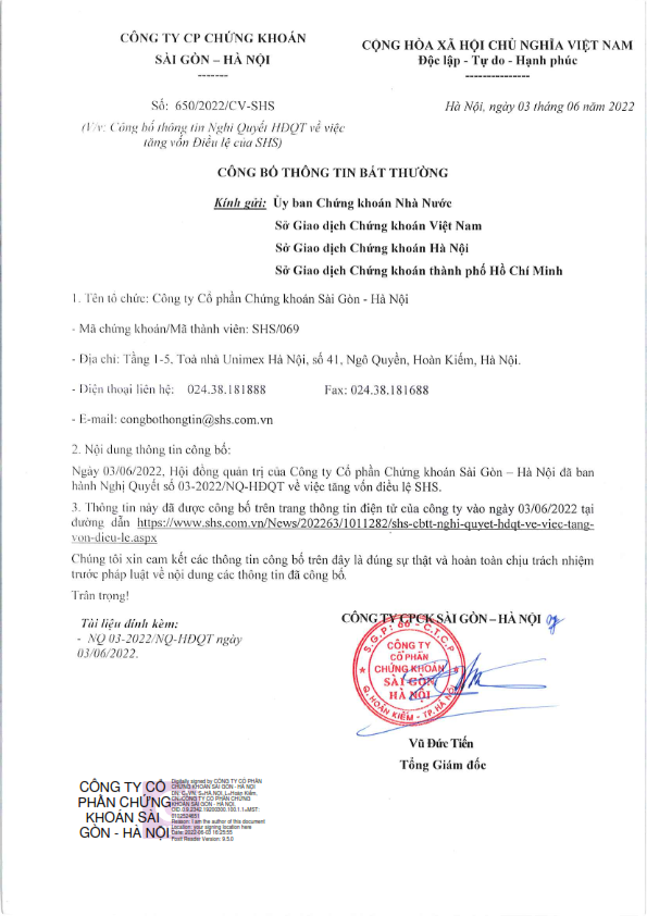 - CBTT: UBCKNN chấp thuận Báo cáo kết quả chào bán cổ phiếu ra công chúng năm 2022 của SHS - 02/06/2022