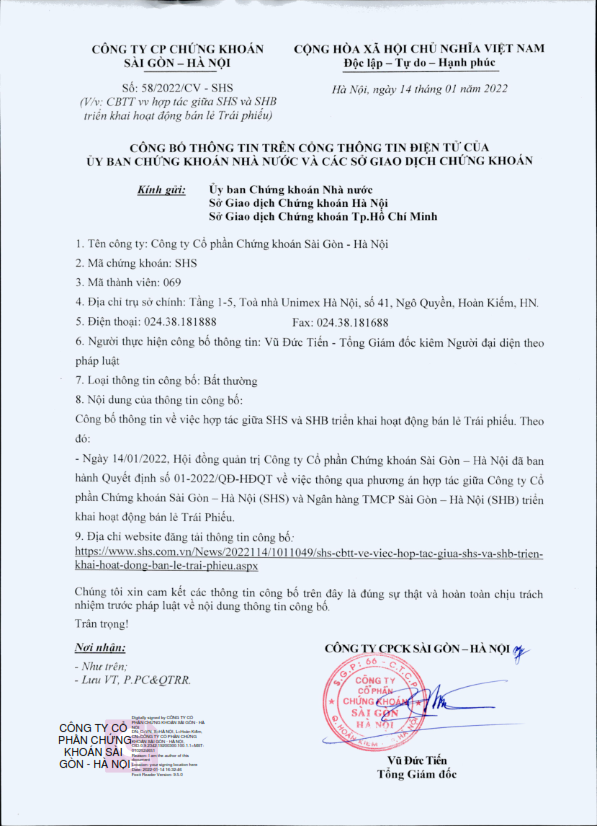 - SHS: Công bố thông tin Báo cáo tài chính quý IV.2021 - 20/01/2022