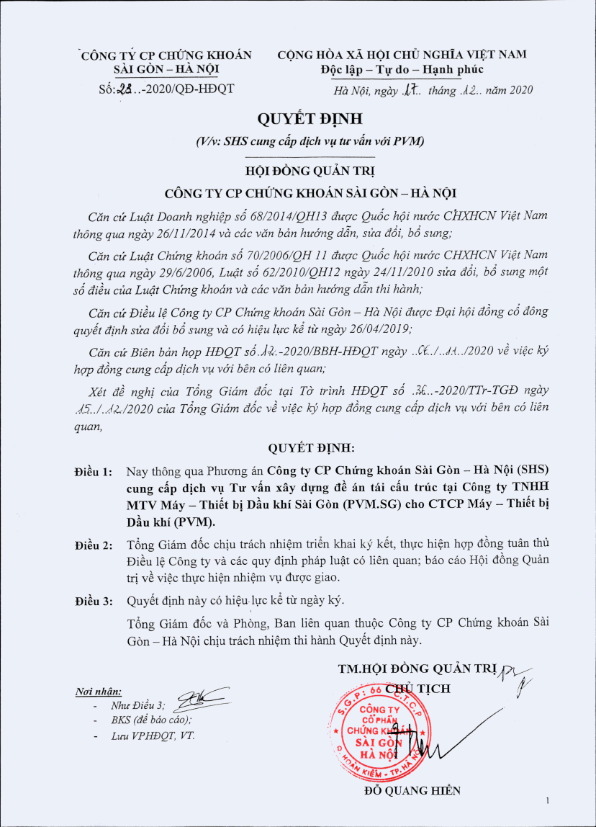 SHS: Công bố thông tin Quyết định của HĐQT thông qua Hợp đồng tư vấn với Bên liên quan - PVM