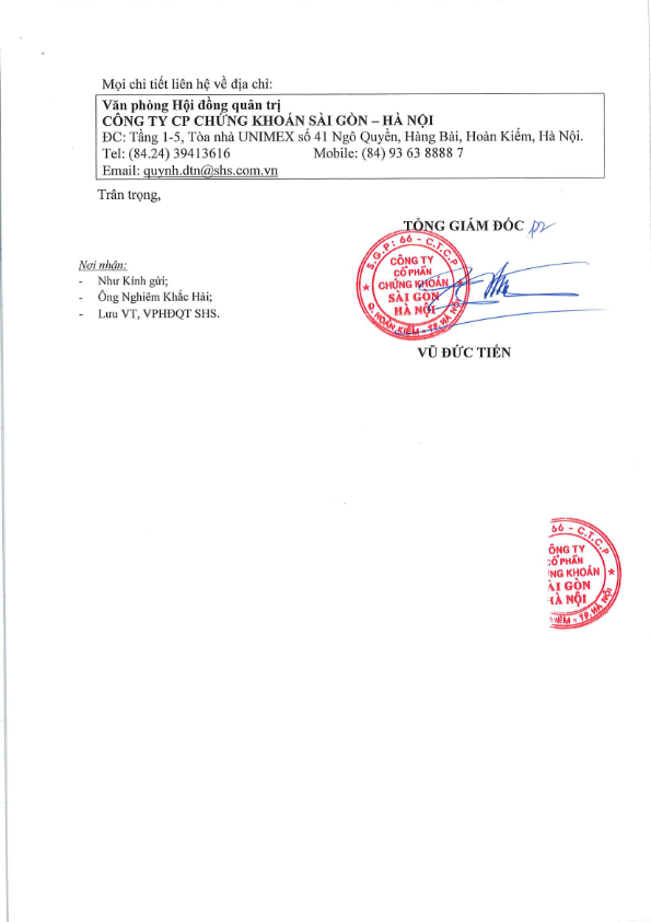SHS_Thông báo v.v Cổ đông thất lạc Sổ CNSH CP SHS