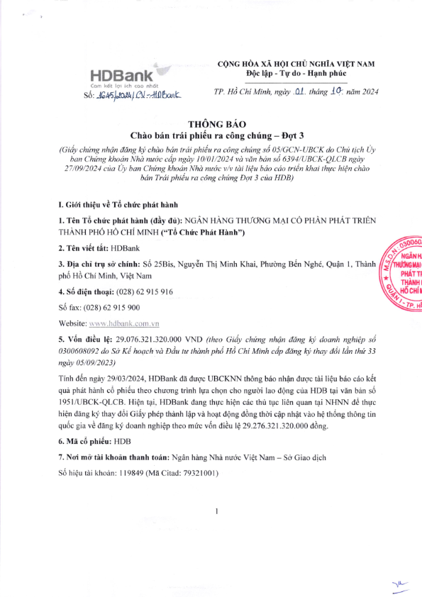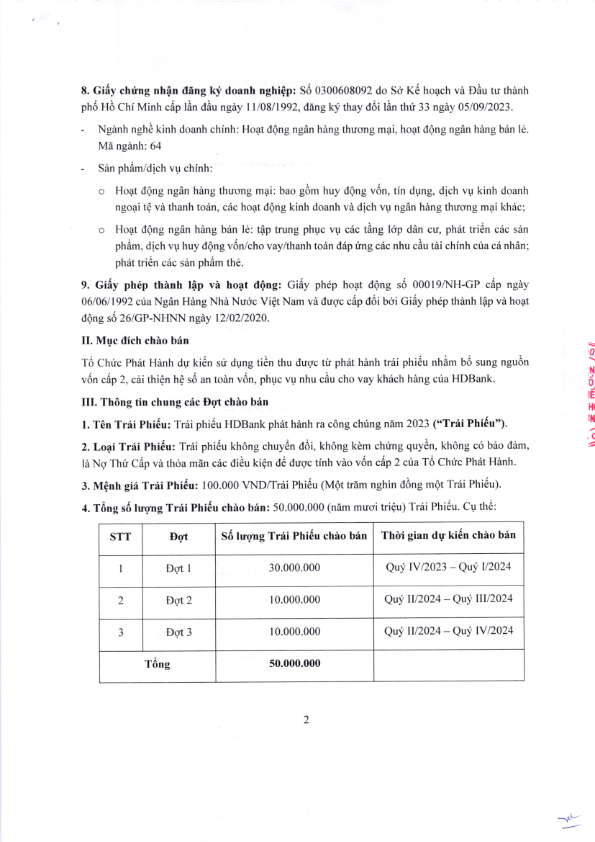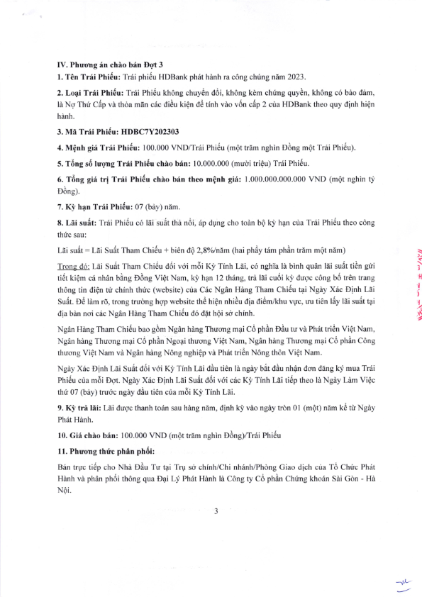 HDBank: Thông báo phát hành trái phiếu ra công chúng năm 2023 - Đợt 3