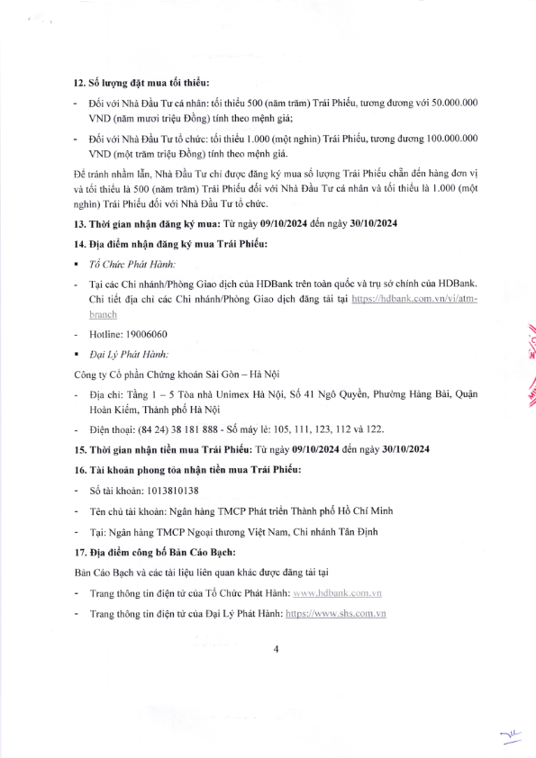 - Thông báo v/v chốt danh sách Người sở hữu Trái phiếu để thực hiện Trả lãi kỳ 4 Trái phiếu LPB10Y202004 - 04/11/2024