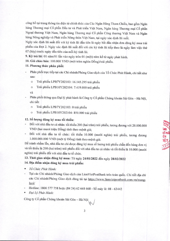 - THÔNG BÁO LÃI SUẤT TRÁI PHIẾU LIENVIETPOSTBANK RA CÔNG CHÚNG ĐỢT 2 NĂM 2021 - 24/01/2022