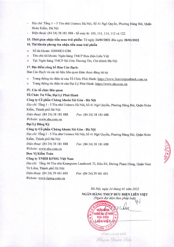 - Thông báo đấu giá bán cổ phần của Ngân hàng TMCP Bưu điện Liên Việt do Tổng công ty Bưu điện Việt Nam sở hữu - 24/01/2022