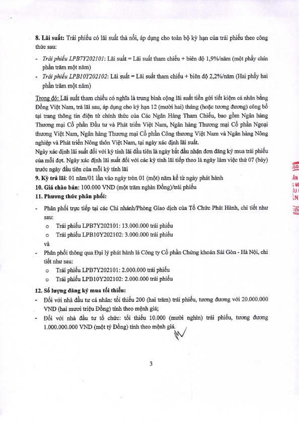- Thông báo lãi suất Trái phiếu LPB7Y202101 và Trái phiếu LPB10Y202102 - 10/12/2021