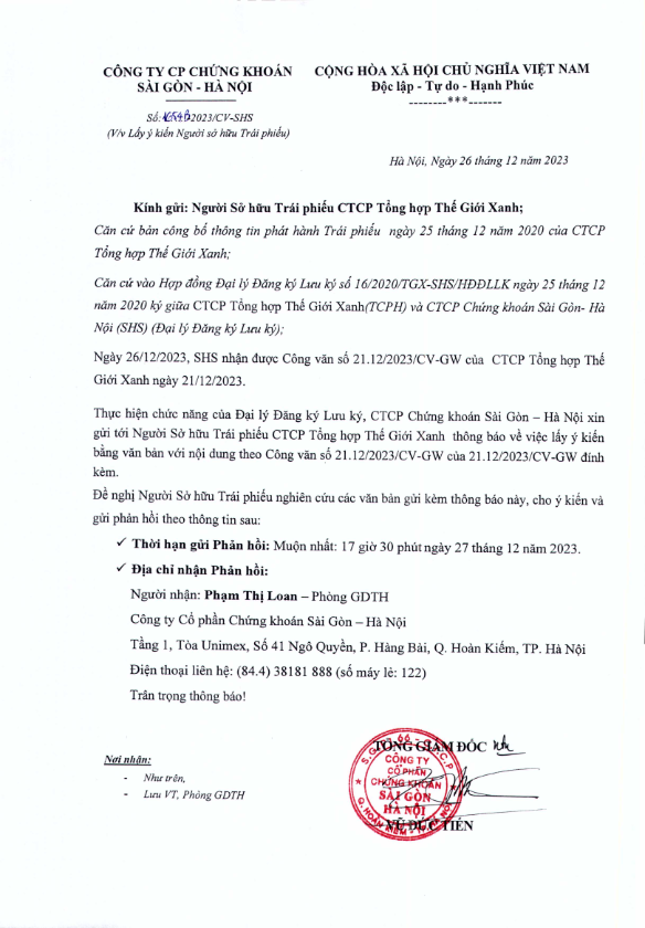 - Thông báo của TCPH về việc Xin ý kiến trái chủ mã TP VT3-L2026-001 - 25/12/2023