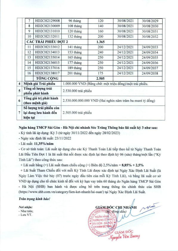 - Thông báo lãi suất áp dụng cho kỳ thanh toán tiếp theo của Trái phiếu CTCP Thái Sơn – Long An - 21/11/2022