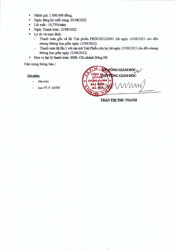 - Thông báo về việc ngày chốt trả gốc và lãi Trái Phiếu NLSL.2020.2Y CTCP Tập đoàn Xuân Thiện - 28/07/2022