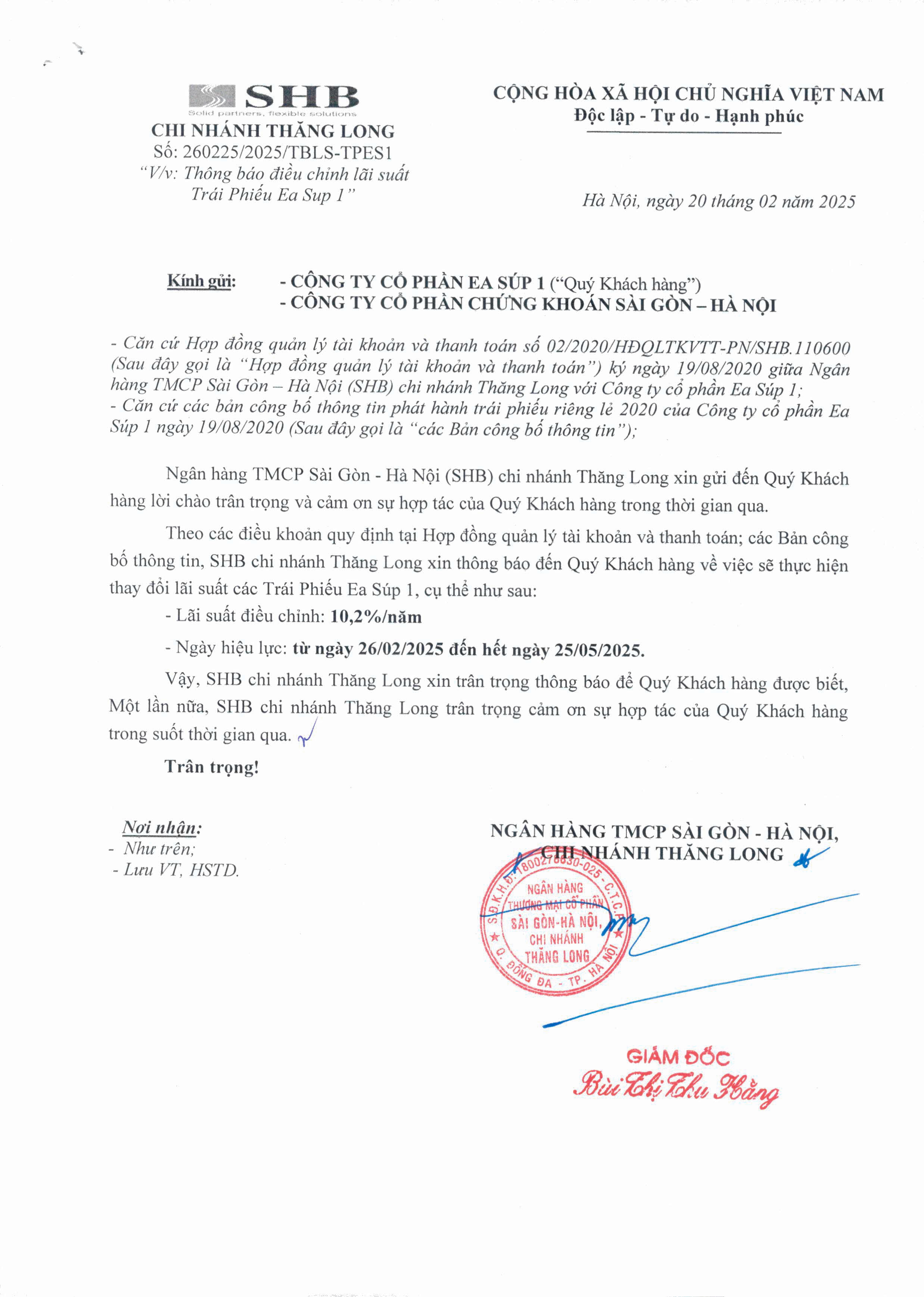 - Thông báo v/v Trả lãi định kỳ lần 19 Trái phiếu Công ty Cổ phần EA SÚP 3 - 02/03/2025