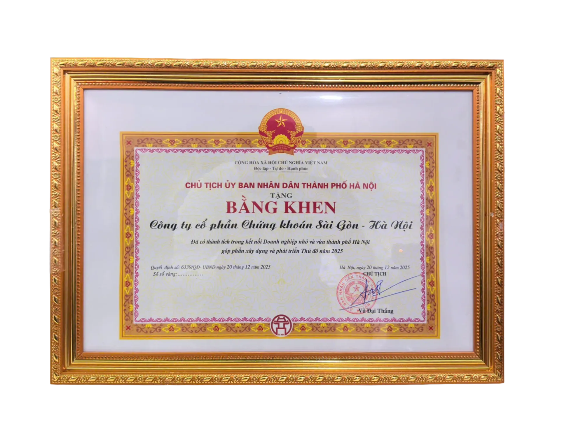 Bằng khen đã có thành tích xuất sắc trong hoạt động kết nối doanh nghiệp nhỏ và vừa thành phố Hà Nội, góp phần vào sự nghiệp xây dựng và phát triển kinh tế - xã hội của Thủ đô năm 2025