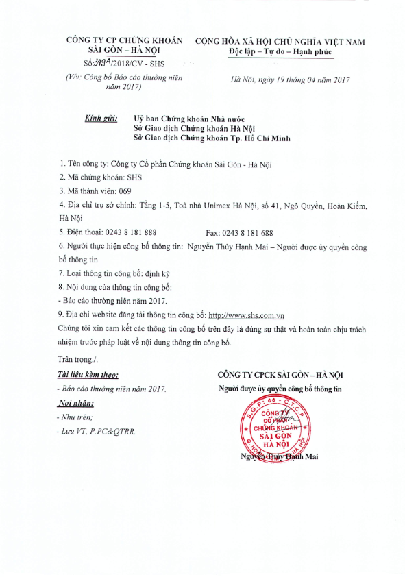 SHS: Công bố thông tin Báo cáo thường niên năm 2017
