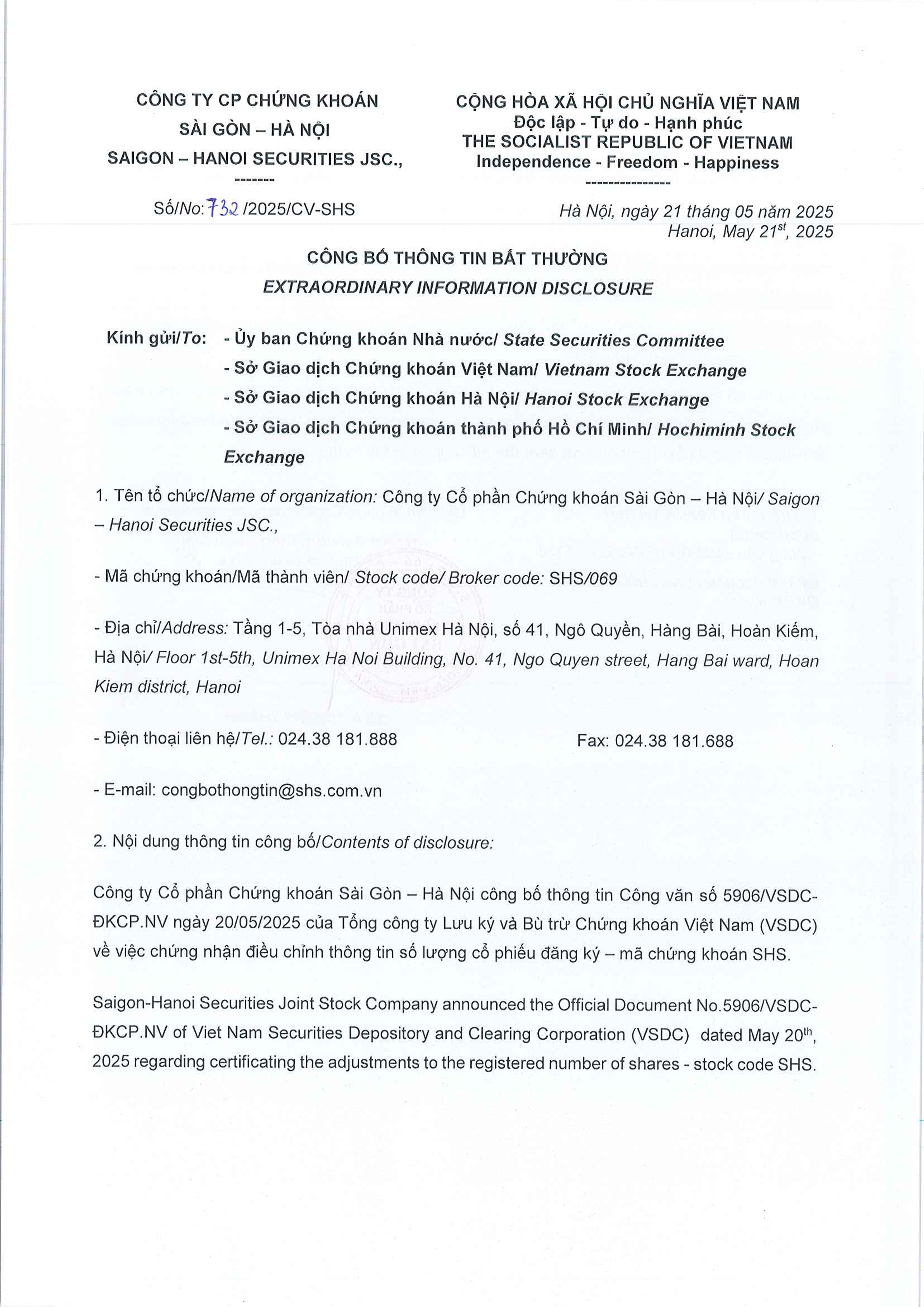 - SHS đã nhận được văn bản của UBCKNN về báo cáo kết quả phát hành cổ phiếu trả cổ tức năm 2023