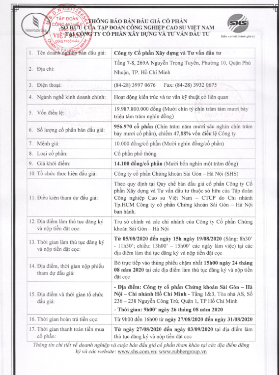 Thông báo bán đấu giá cổ phần CTCP Xây dựng và Tư vấn đầu tư