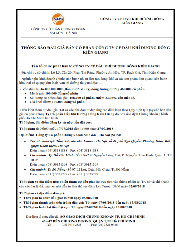 Thông báo đấu giá bán Công ty Cổ phần Dầu khí Dương Đông Kiên Giang