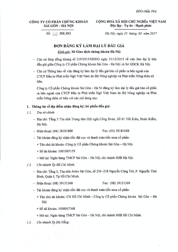 Thông báo đấu giá CTCP Đầu tư và Phát triển Ngô Việt Nam do Bộ Nông nghiệp và Phát triển Nông thôn sở hữu