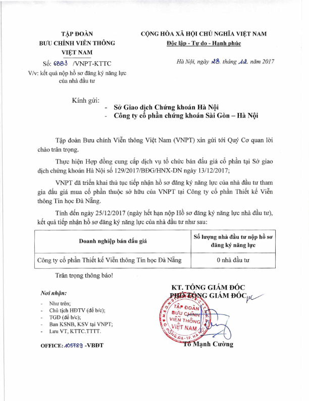 - Thông báo bán đấu giá cổ phần của Tập đoàn VNPT tại CTCP Phát triển viễn thông Bắc miền trung - 02/01/2018