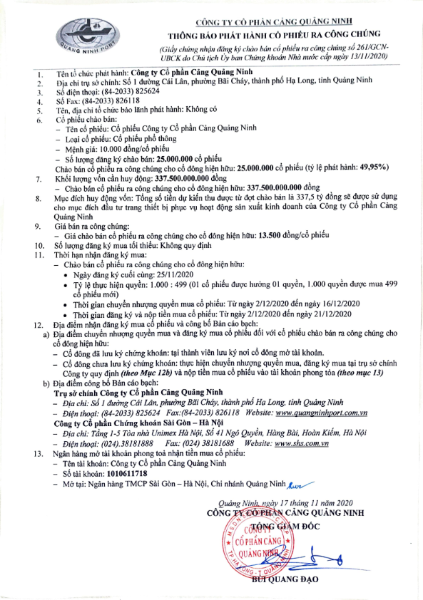Thông báo phát hành và Bản cáo bạch phát hành CP ra công chúng của CQN