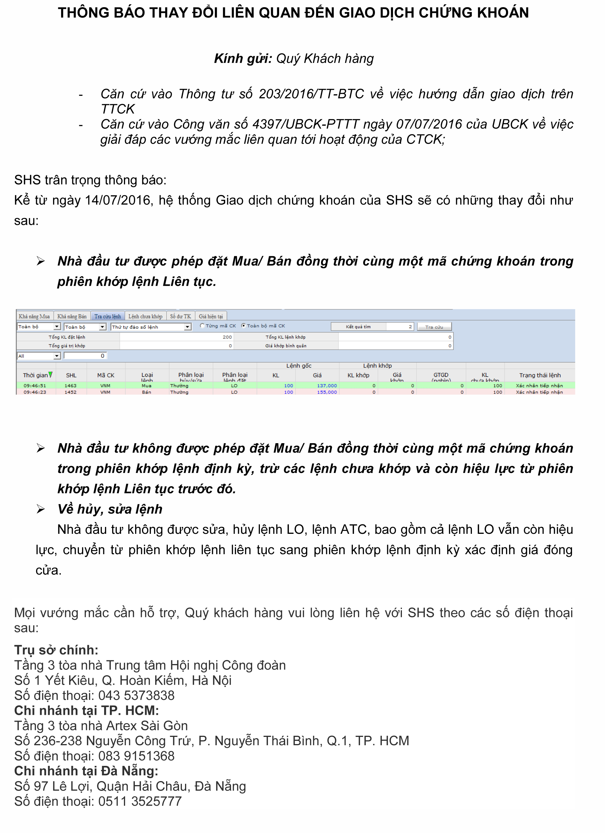 Thông báo thay đổi liên quan đến giao dịch chứng khoán