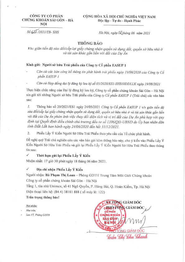 - Thông báo về việc xin ý kiến TC gia hạn bìa đỏ Công ty CP Ea súp 3 - 01/06/2021