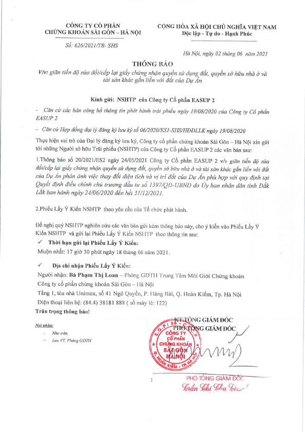 - Thông báo về việc xin ý kiến TC gia hạn bìa đỏ Công ty CP Ea súp 1 - 01/06/2021