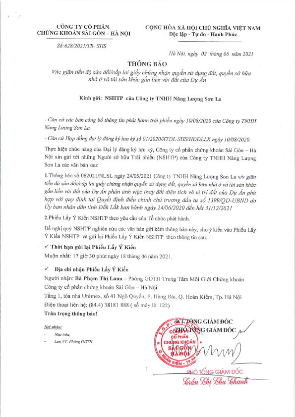Thông báo về việc xin ý kiến TC gia hạn bìa đỏ Công ty TNHH Năng Lượng Sơn La