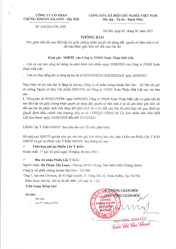 Thông báo về việc xin ý kiến TC gia hạn bìa đỏ Công ty TNHH Xuân Thiện Đắk Lắk