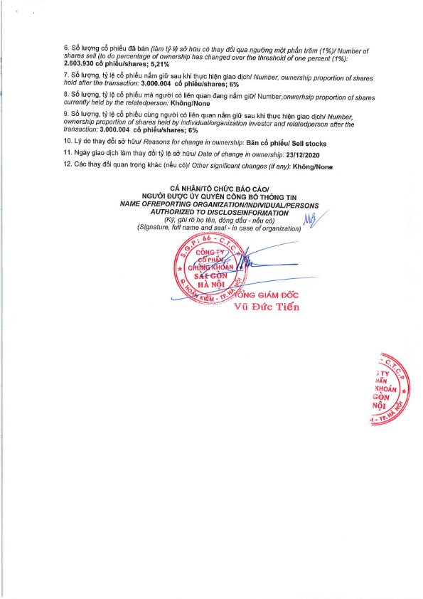 SHS: CBTT về việc SHS thay đổi tỷ lệ sở hữu VRC