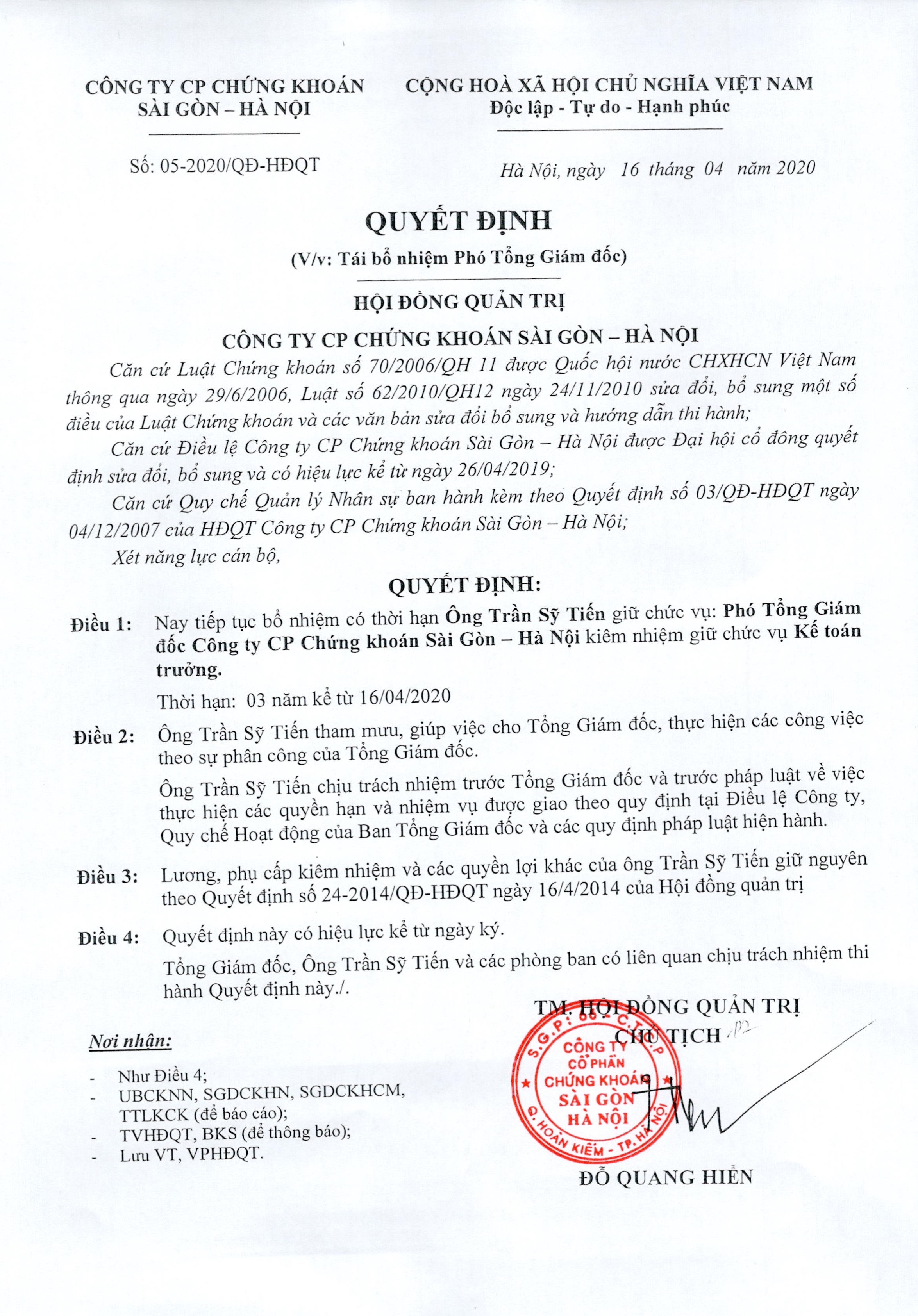 - SHS: CBTT tiếp tục bổ nhiệm Ông Nguyễn Chí Thành giữ chức vụ Phó Tổng Giám đốc SHS