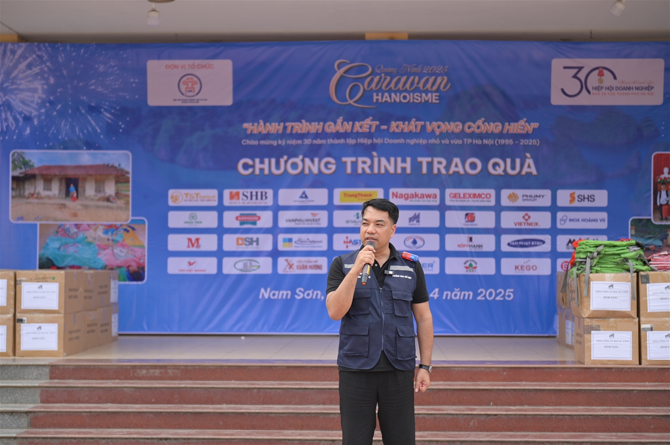 Phát biểu tại chương trình, TS. Mạc Quốc Anh – Ủy viên Ủy ban Trung ương Mặt trận Tổ quốc Việt Nam, Bí thư Đảng ủy, Phó Chủ tịch kiêm Tổng Thư ký HANOISME – nhấn mạnh: “Chúng tôi tổ chức chương trình nhân dịp kỷ niệm 50 năm Ngày Giải phóng miền Nam thống nhất đất nước và hướng tới 30 năm thành lập Hiệp hội. Đây là một hoạt động thường niên thể hiện tinh thần trách nhiệm, sự sẻ chia của cộng đồng doanh nghiệp với những hoàn cảnh khó khăn, đặc biệt là trẻ em dân tộc thiểu số tại các vùng sâu, vùng xa. Qua mỗi hành trình Caravan, chúng tôi cũng mong muốn lan tỏa ý thức xã hội trong hoạt động sản xuất kinh doanh, để mỗi doanh nghiệp không chỉ phát triển bền vững mà còn đóng góp thiết thực cho cộng đồng.”