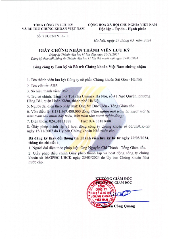 - Mr. Thanh, Nguyen Chi - SHS CEO&Legal Representative – officially since March 25, 2024