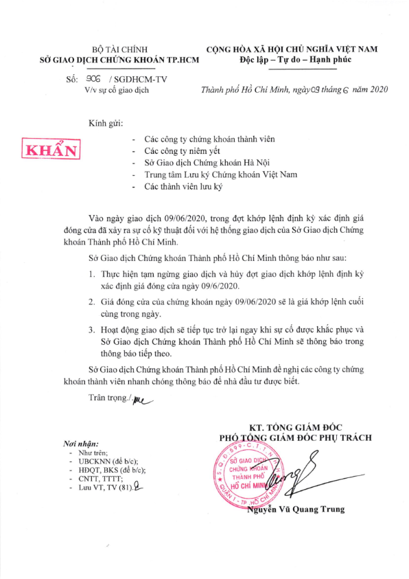 SHS: Thông báo của Sở GDCK Hồ Chí Minh về sự cố giao dịch ngày 9/6/2020
