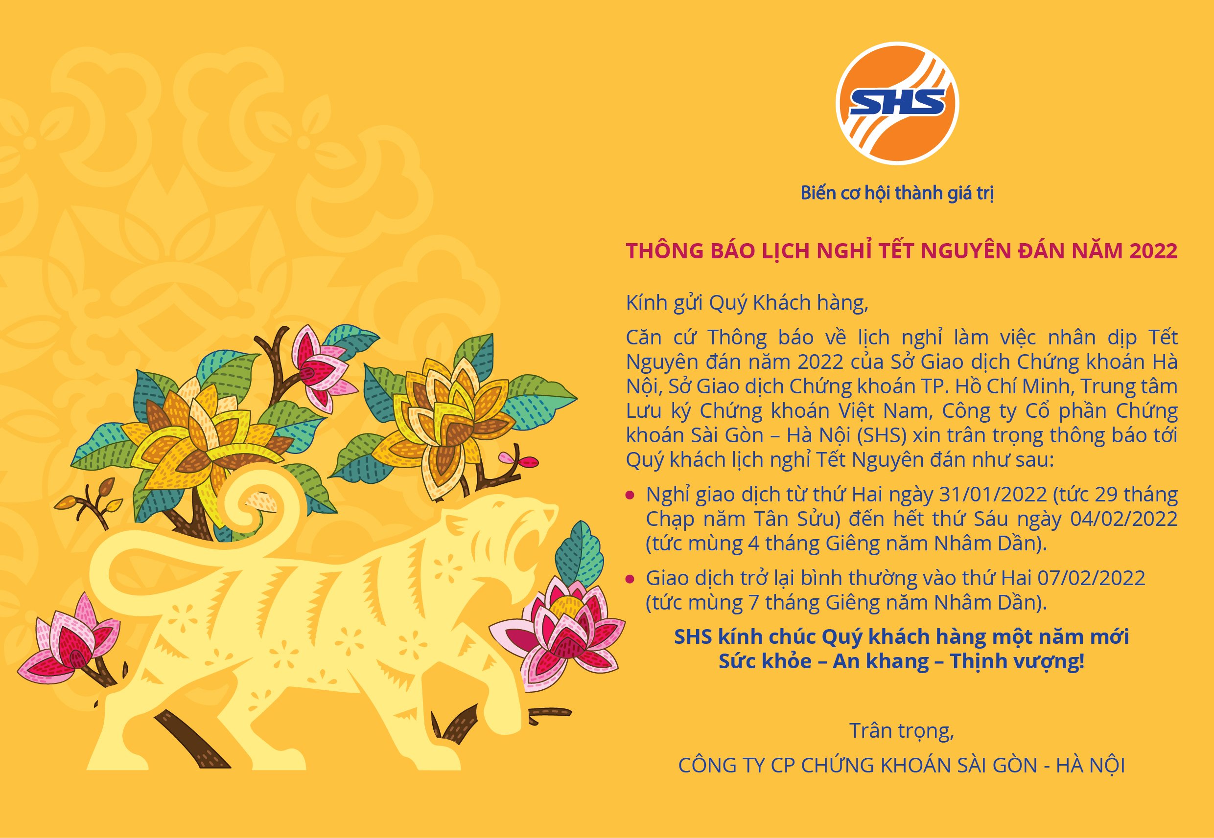 SHS THÔNG BÁO LỊCH NGHỈ TẾT NGUYÊN ĐÁN NĂM 2022