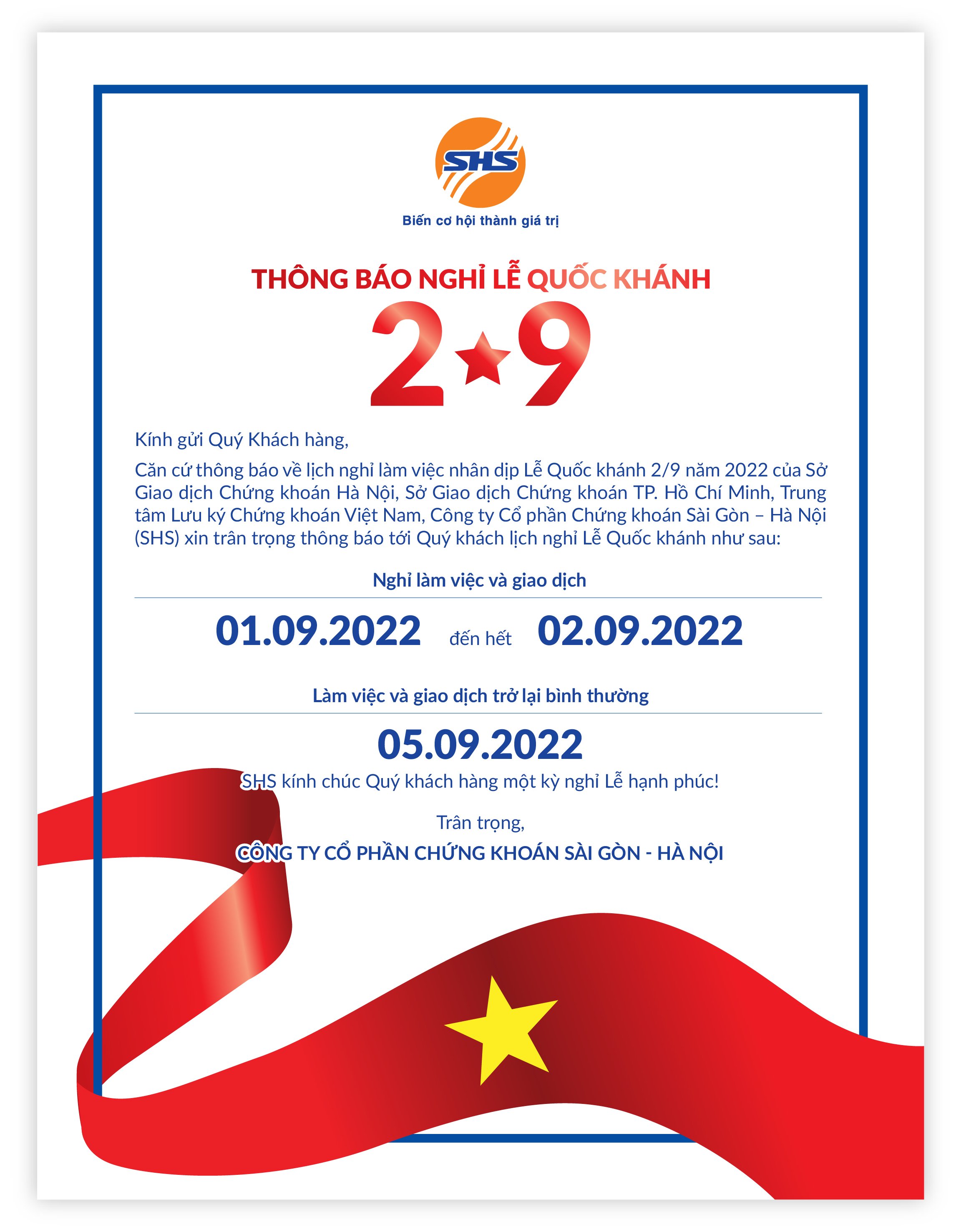 SHS: THÔNG BÁO NGHỈ LỄ QUỐC KHÁNH 2-9