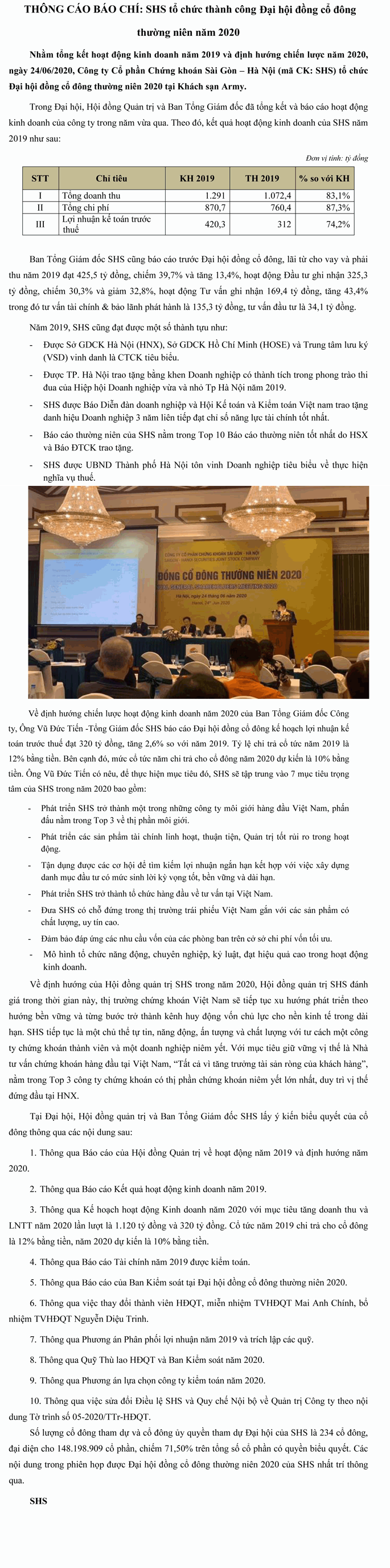 - SHS thông báo ngày ĐKCC chi trả cổ tức năm 2019 là 23.07.2020