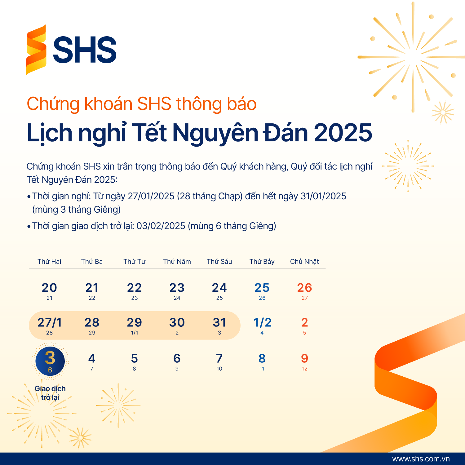 SHS xin thông báo lịch nghỉ giao dịch nhân dịp Tết Nguyên Đán 2025 như sau: