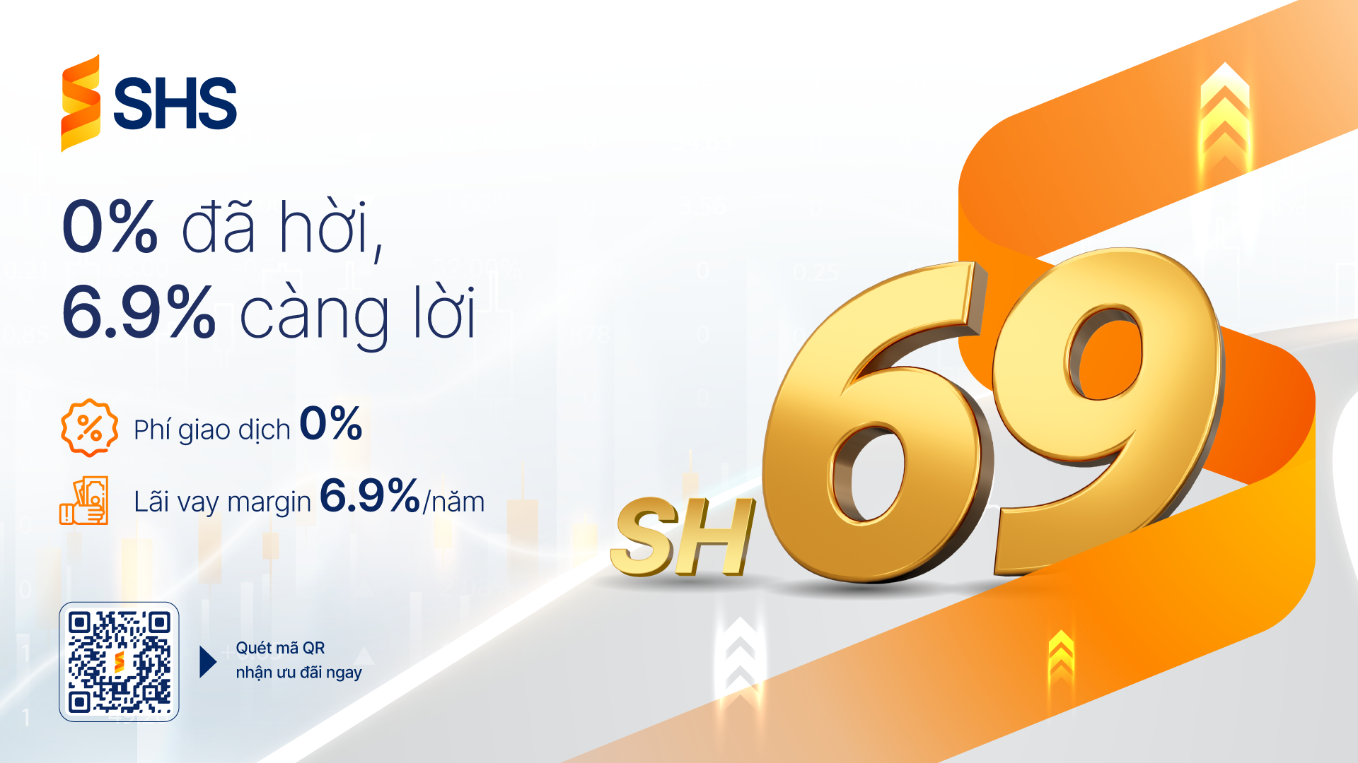 Từ ngày 06/01/2025, CTCP Chứng khoán Sài Gòn – Hà Nội (SHS) triển khai gói sản phẩm “SH69 – 0% đã hời, 6.9% càng lời” ưu đãi cho Khách hàng mới và Khách hàng giao dịch trở lại.